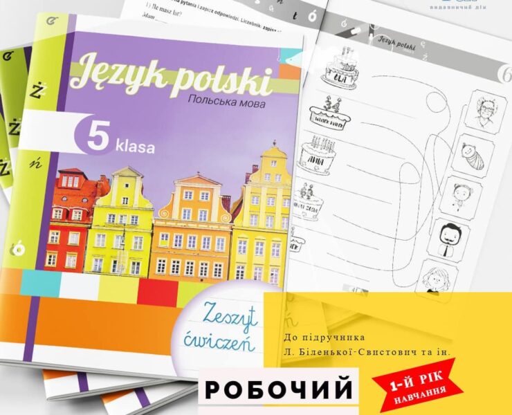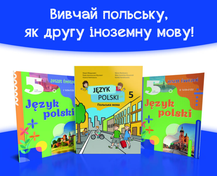 Підручник з польської мови для 5 класу та робочі зошити з польської мови для 5 класу на І та ІІ семестр.
