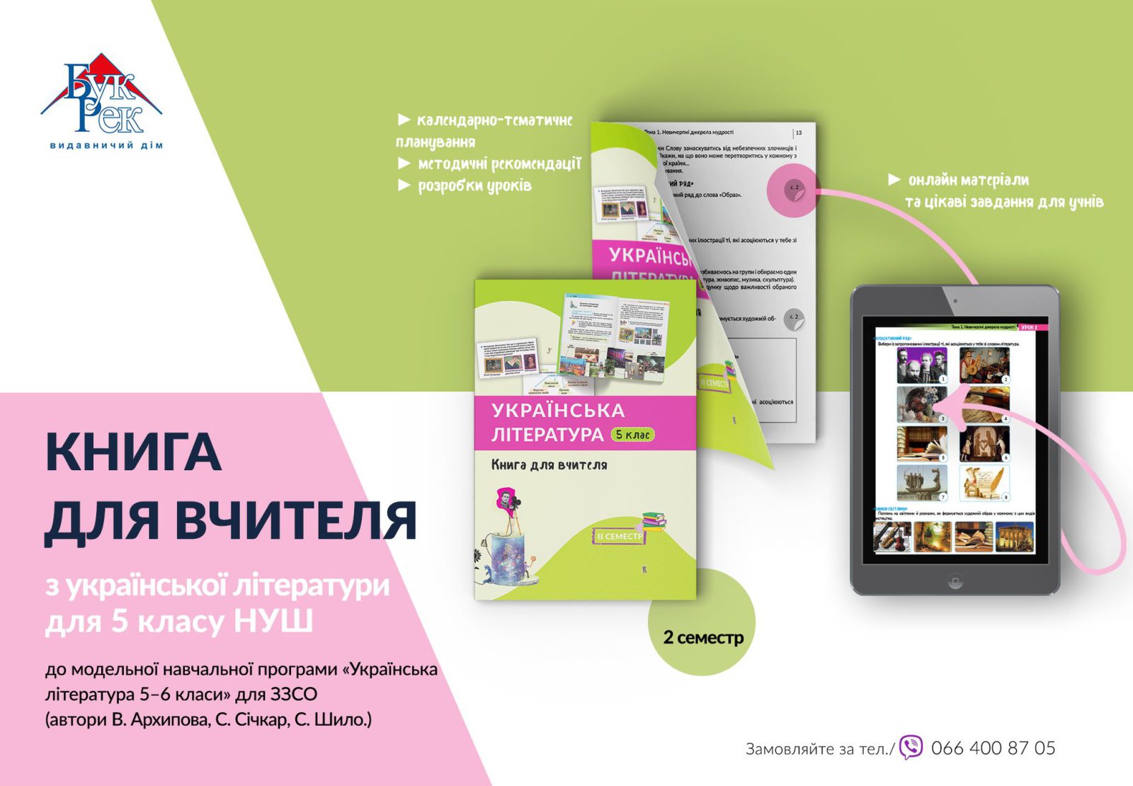 З’явилася можливість придбати навчально-методичний посібник «Книга для вчителя. ІІ семестр», який містить розробки уроків з української літератури для 5 класу за Модельною навчальною програмою «Українська література. 5-6 класи» для закладів загальної середньої освіти (автори: Архипова В., Січкар С., Шило С.).