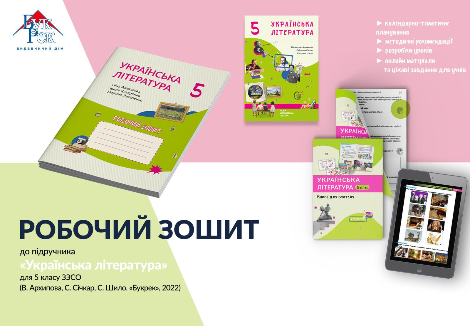 Друзі! Цьогоріч комплект для вивчення української літератури у 5 класі доповнили Робочим зошитом (автори Ніна Алексєєва, Ірина Кучеренко, Марина Лазаренко).