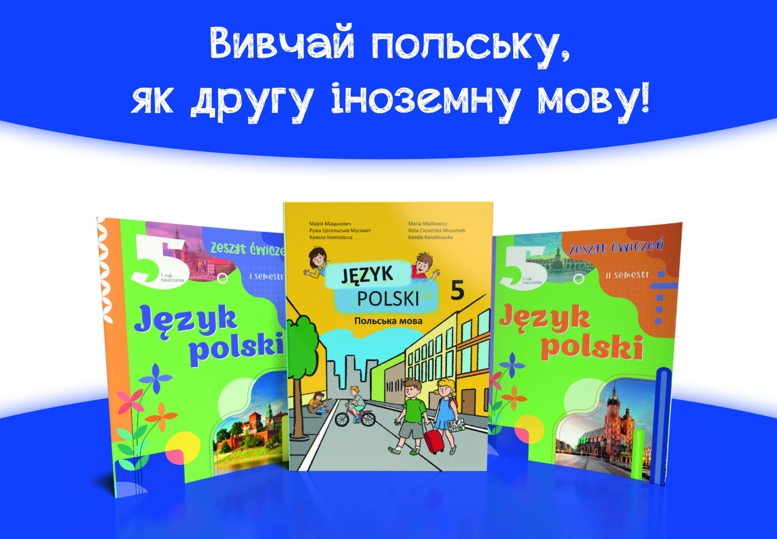 - Польська мова (1-й рік навчання, друга іноземна): підручник для 5 класу ЗЗСО (з аудіосупроводом) (авт. Мацькович М., Цесельська-Мусамег Р., Квятковска К.);